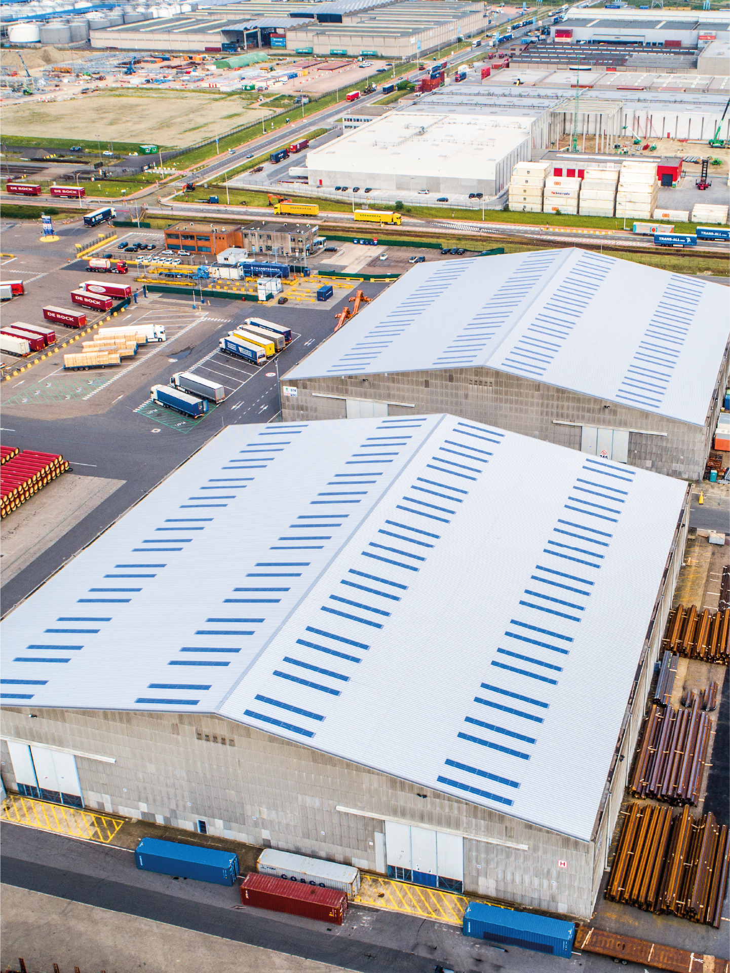Avec nos 30 années d’expérience dans ce secteur, nous avons développé une gamme complète et diversifiée pour tous types de bâtiments industriels. Pour ce chantier, Euroports & Elegast nous ont retenu comme partenaire pour les raisons suivantes :