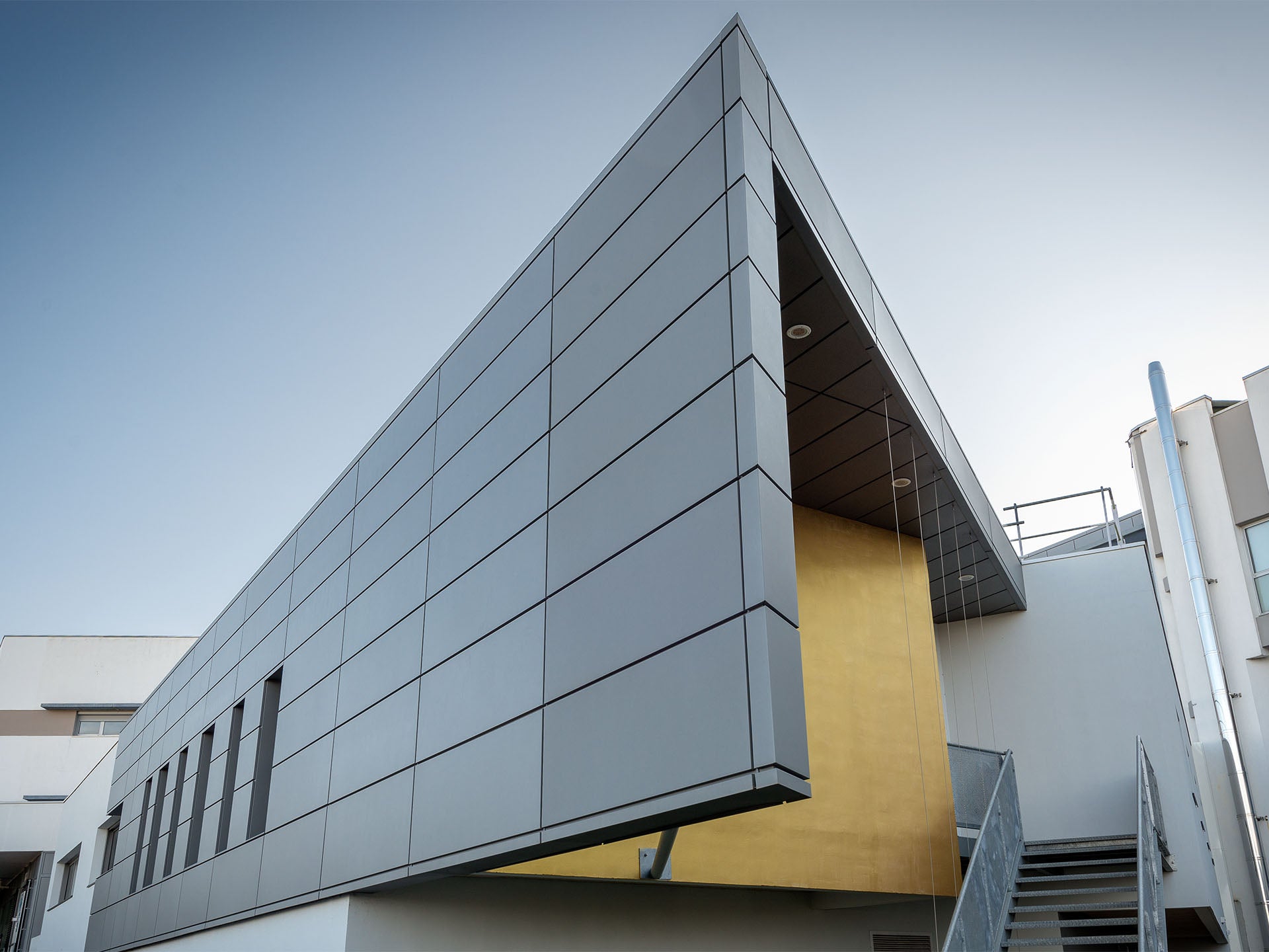Pour le nouvel hôpital de Morlaix, la cassette JI Tramontane a été utilisée. La Cassette JI Tramontane est un concept d’habillage d’aspect plan en fixations visibles conçu aussi bien pour le neuf que pour la rénovation.