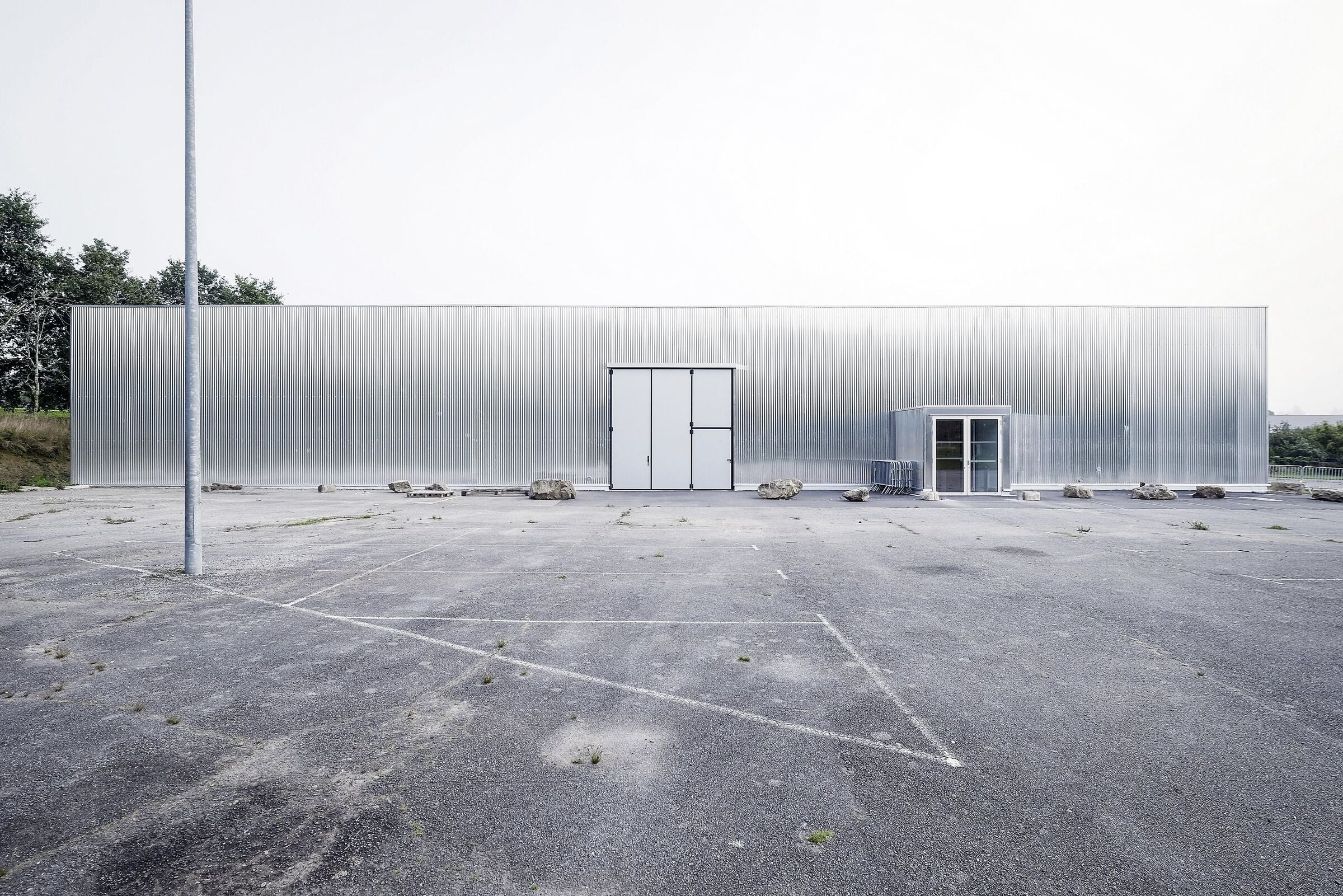 L'objectif est de conserver le caractère de l'ancien supermarché tout en offrant un espace multifonctionnel, flexible et confortable à utiliser. Le projet consiste à ajouter des éléments de programme, à réorganiser les espaces et à recouvrir le bâtiment d'une nouvelle peau qui s'intègre au paysage environnant.