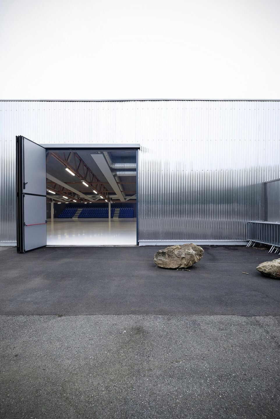 Pour moderniser le bardage métallique vieillissant, un nouveau bardage mural en aluminium JI 18-076-988 a été installé en guise de façade du bâtiment. Cet élément de conception rend hommage aux origines industrielles et économiques de la structure tout en se fondant dans l'environnement. Avec sa surface réfléchissante, le bâtiment semble s'animer en reflétant la lumière et la couleur du ciel et du paysage changeant, offrant une apparence toujours différente.