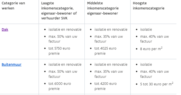 De Vlaamse Regering heeft aangekondigd dat de tijdelijk hogere Mijn VerbouwPremie voor renovaties in de middelste (35%) en laagste (50%) inkomenscategorieën wordt verlengd tot eind 2024, gunstig voor zowel aanvragers als aannemers met meer tijd voor projecten. De extra premie voor dak- of muurisolatie en eventueel gelijktijdige asbestverwijdering wordt verlengd tot eind 2025. De basispremie voor dakisolatie via aannemers blijft 8 euro per m² tot eind 2025, met een vereist totaal factuurbedrag van minstens 1.000 euro. Bij combinatie met asbestverwijdering kan de premie met 8 euro per m² worden verhoogd tot maximaal 50% van het factuurbedrag, met facturen vanaf 1 januari 2021.