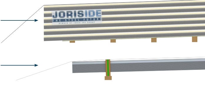 - Het hanteren van sandwichpanelen met minerale wol (Vulcasteel-reeks) moet gebeuren op de zijkant, zonder op de tand- en groefverbindingen te steunen.