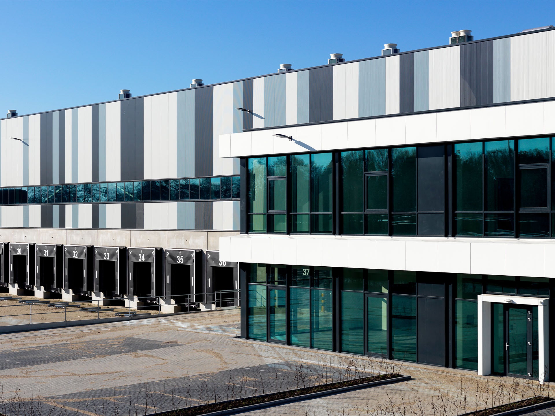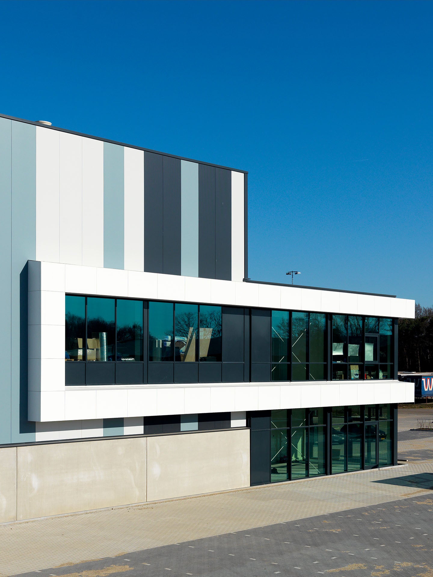 Waar distributiecentra eerder grote dozen in een uni-kleur waren, wil een opdrachtgever zich tegenwoordig onderscheiden met hun pand. Qua esthetica en vormgeving van distributiecentra ben je wat beperkter uiteraard, maar als architect kun je spelen met lijnen en kleuren, waarmee een extra toevoeging in het gevelbeeld van dit soort grote gebouwen ontstaat. Zo creëer je een heel andere uitstraling.
