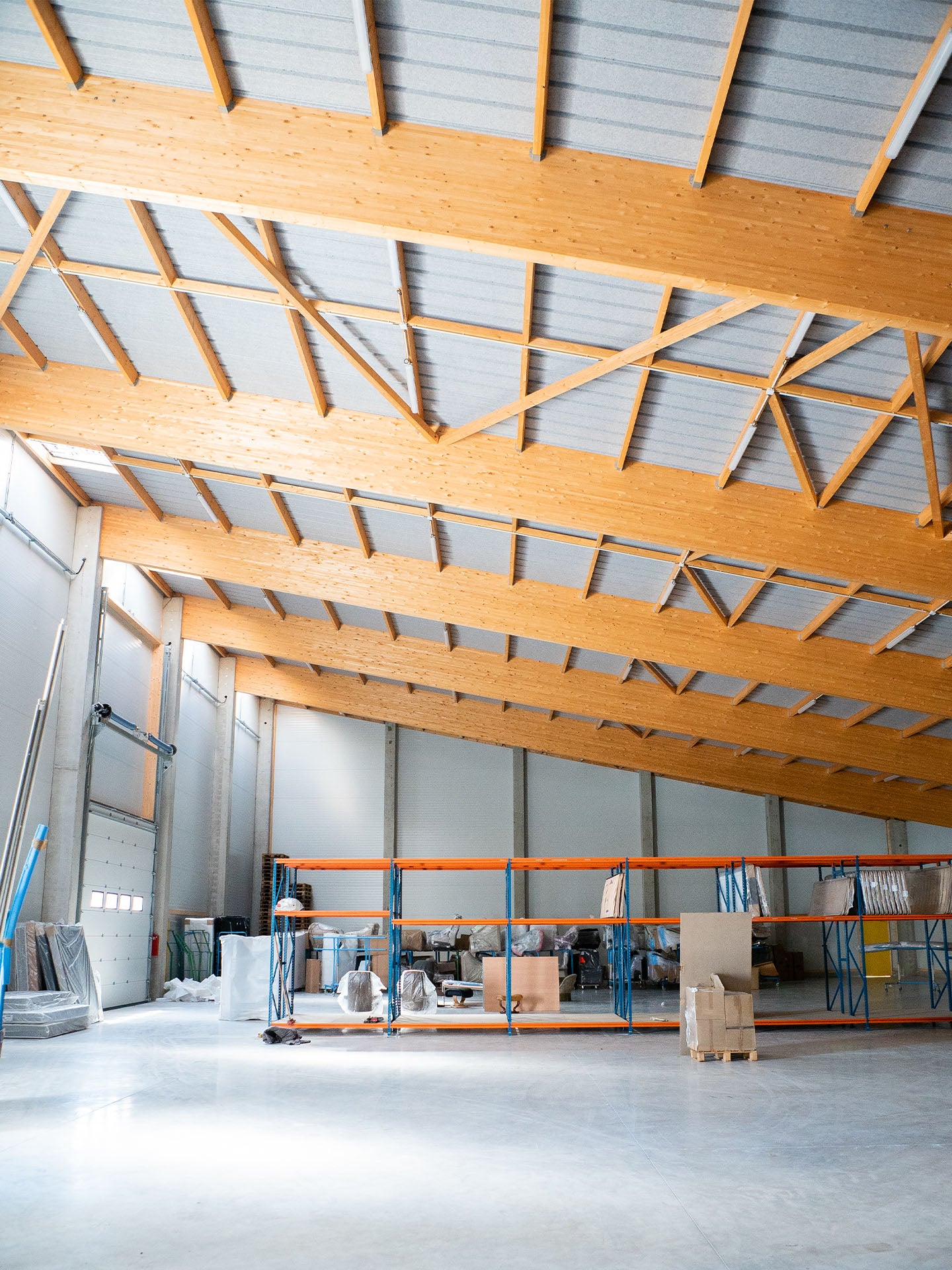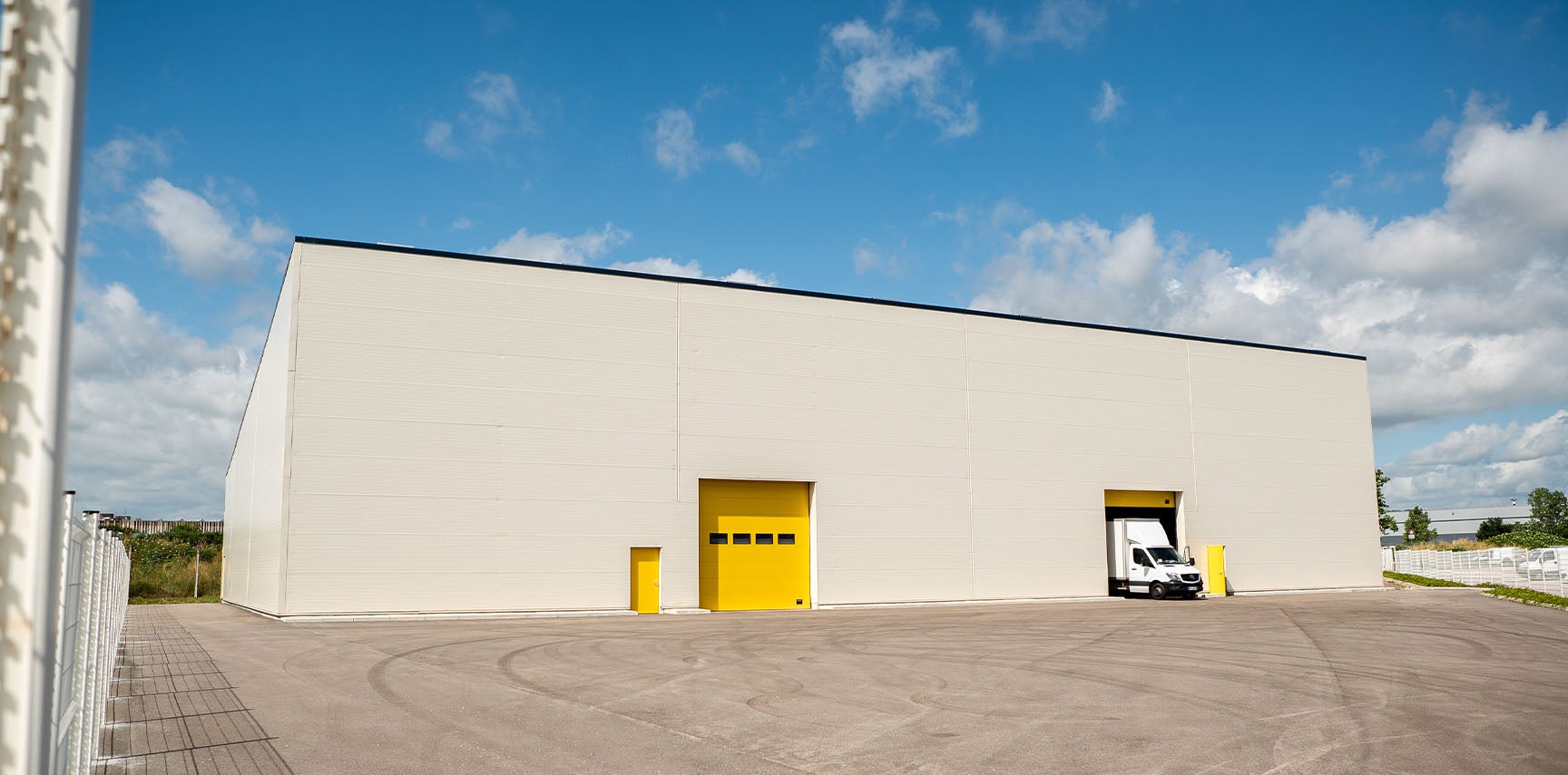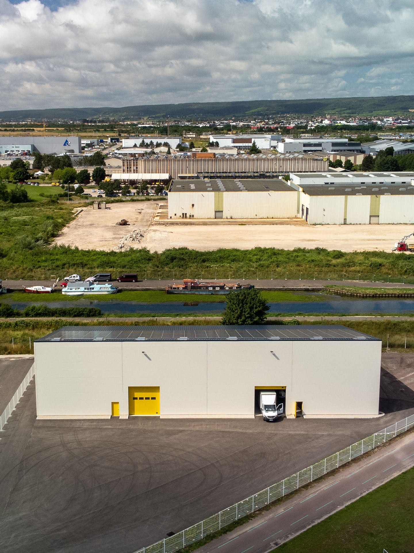 De beige kleur (RAL 1013) geeft dit gebouw een zeer heldere uitstraling. Dit opslaggebouw met één helling combineert 3 belangrijke argumenten: