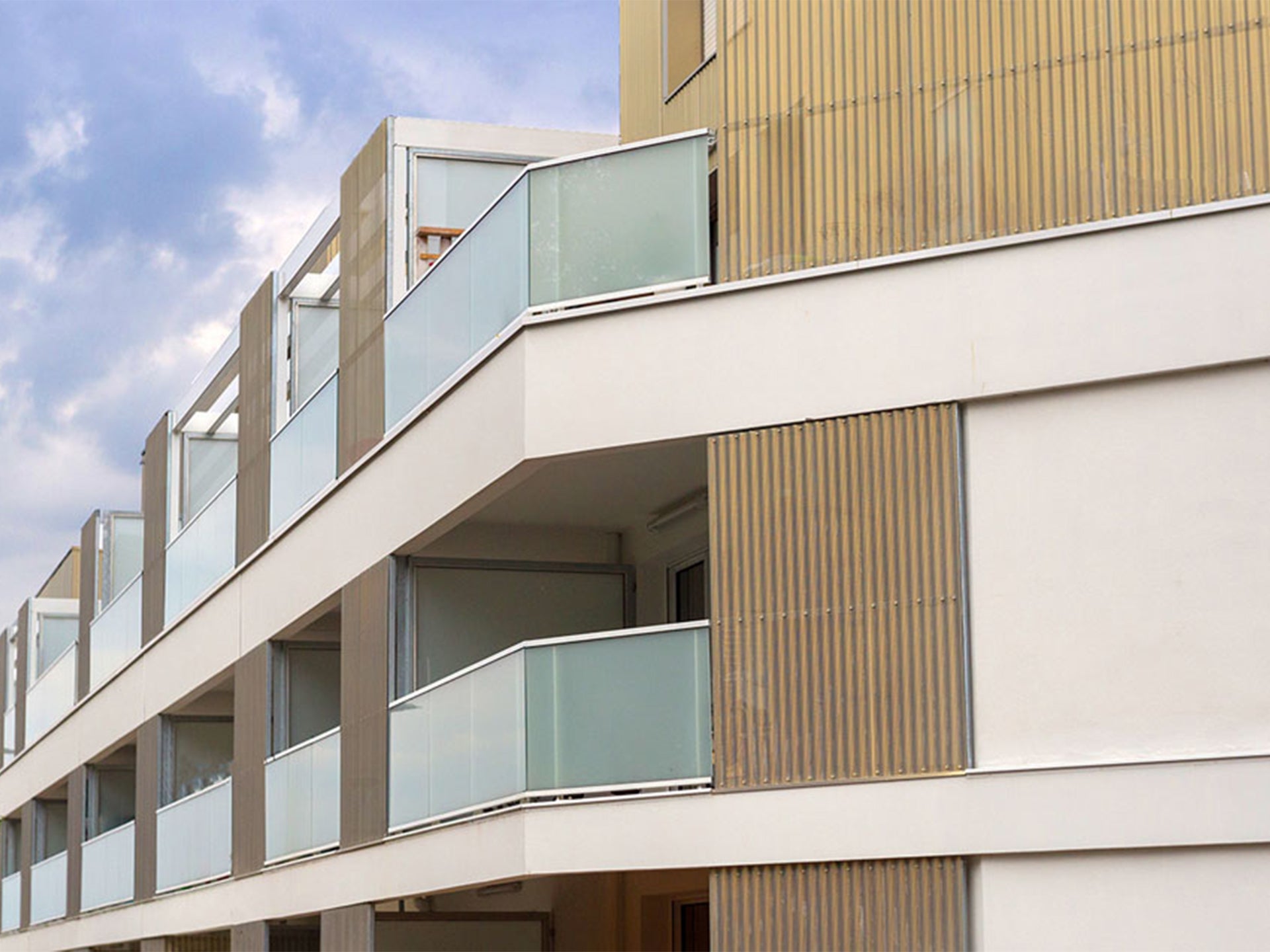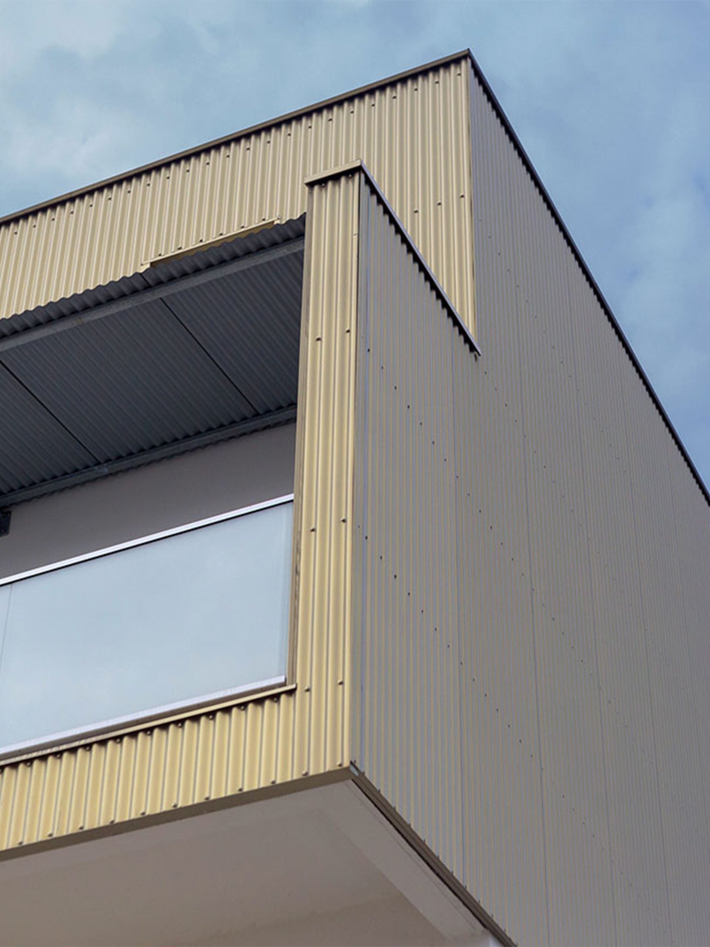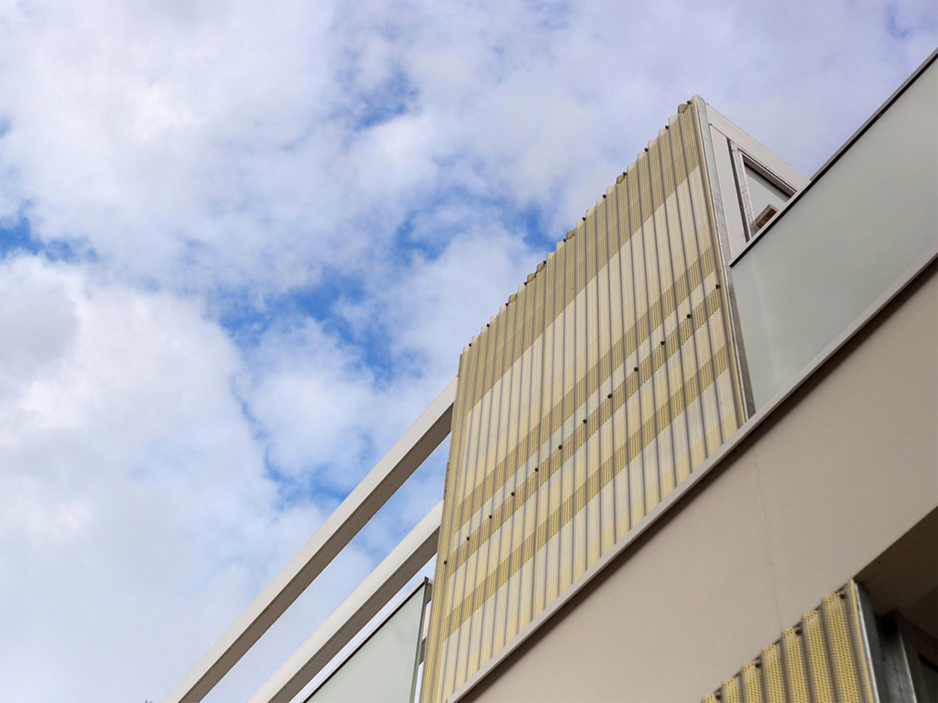 De residentie is bekleed met een gevelbekledingsprofiel Joris Ide JI 18-076-988. De coating (Gold Perla) is de esthetische handtekening van het project en geeft een modern gevoel aan het architecturale geheel. In combinatie met de golfplaten benadrukt de gevelbekleding het spel van schaduwen, weerspiegelingen en contrasten. Hetzelfde sinusvormige profiel in een geperforeerde versie wordt gebruikt op de balkons als een visuele onderbreking om de privacy van de bewoners te vergroten en een schaduwzone te creëren.