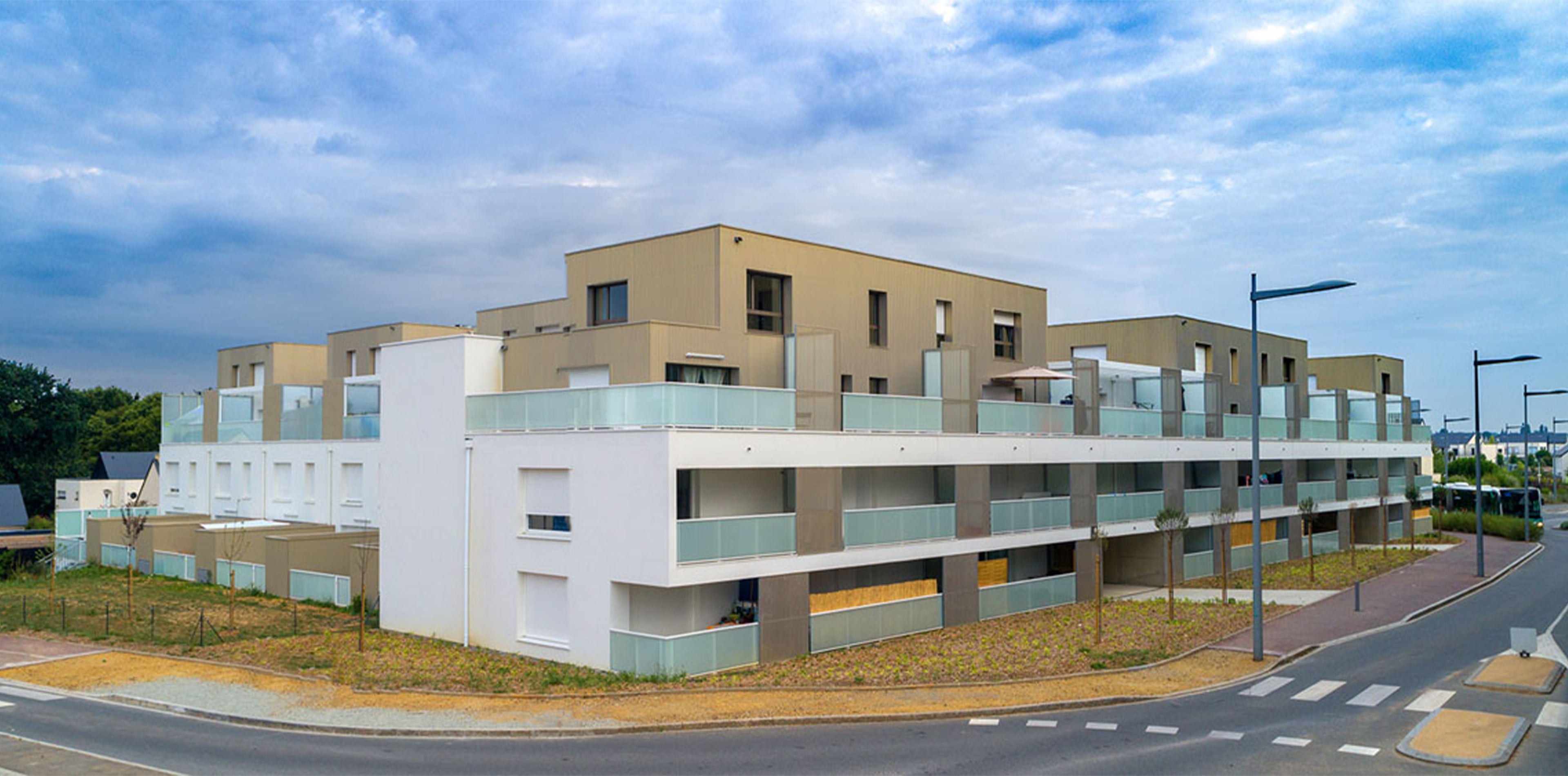 Het residentieproject Le Safran in Saint-Grégoire, in de buurt van Rennes, maakt deel uit van de stedelijke ontwikkelingsdynamiek van de stad, die erop gericht is het aanbod van sociale huurwoningen te vergroten. Het project bestaat uit 58 appartementen. Elke unit heeft een terras van 10m² of 20m². Voor dit project zijn de architecten erin geslaagd om het "dorpsgevoel" en de aantrekkelijkheid van collectieve huisvesting te herstellen.