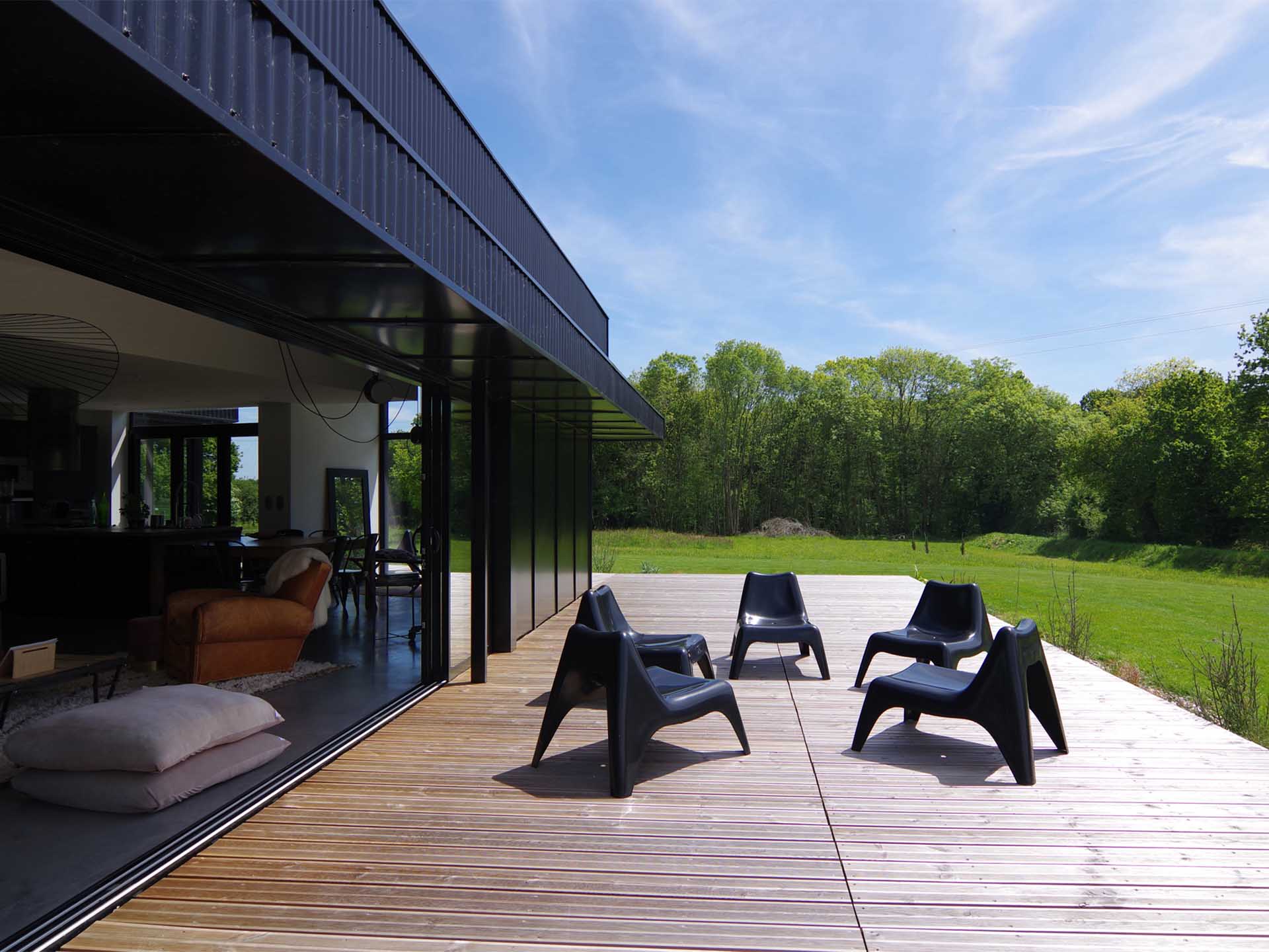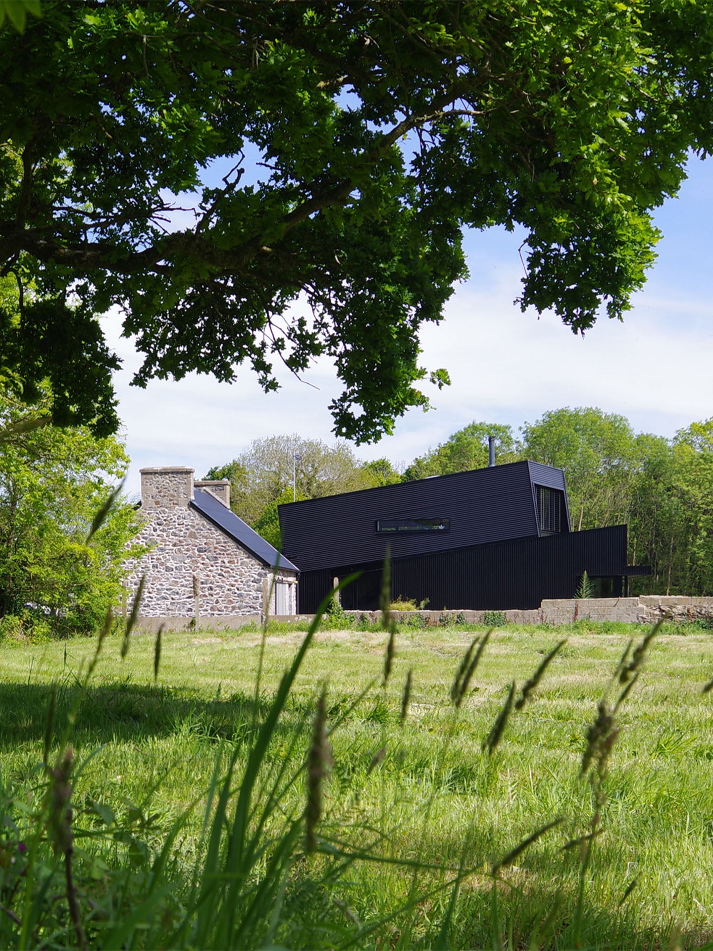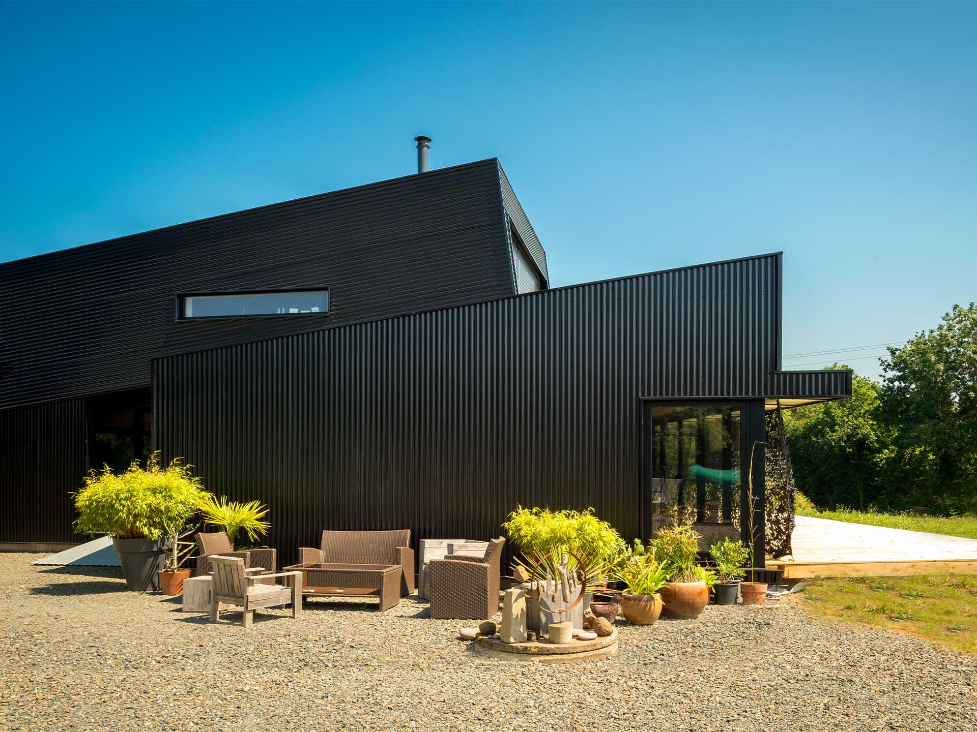 För detta nya bostadsprojekt i Tréveneuc, Frankrike, var stål en viktig komponent i en energieffektiv modern design. Detta bostadshus med intilliggande verkstad har en lantlig arkitektur med modern känsla.